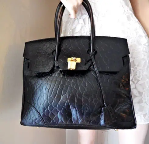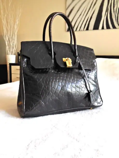 AUTHENTIC + PRE-LOVED BLACK CROC EMBOSSED LEATHER TOTE