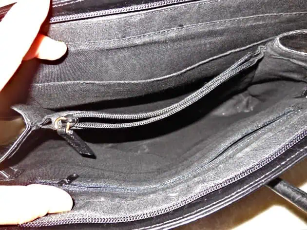 Interior Open Top Cell Phone and Item Pocket with 3 main compartments and few of them on zip closure.