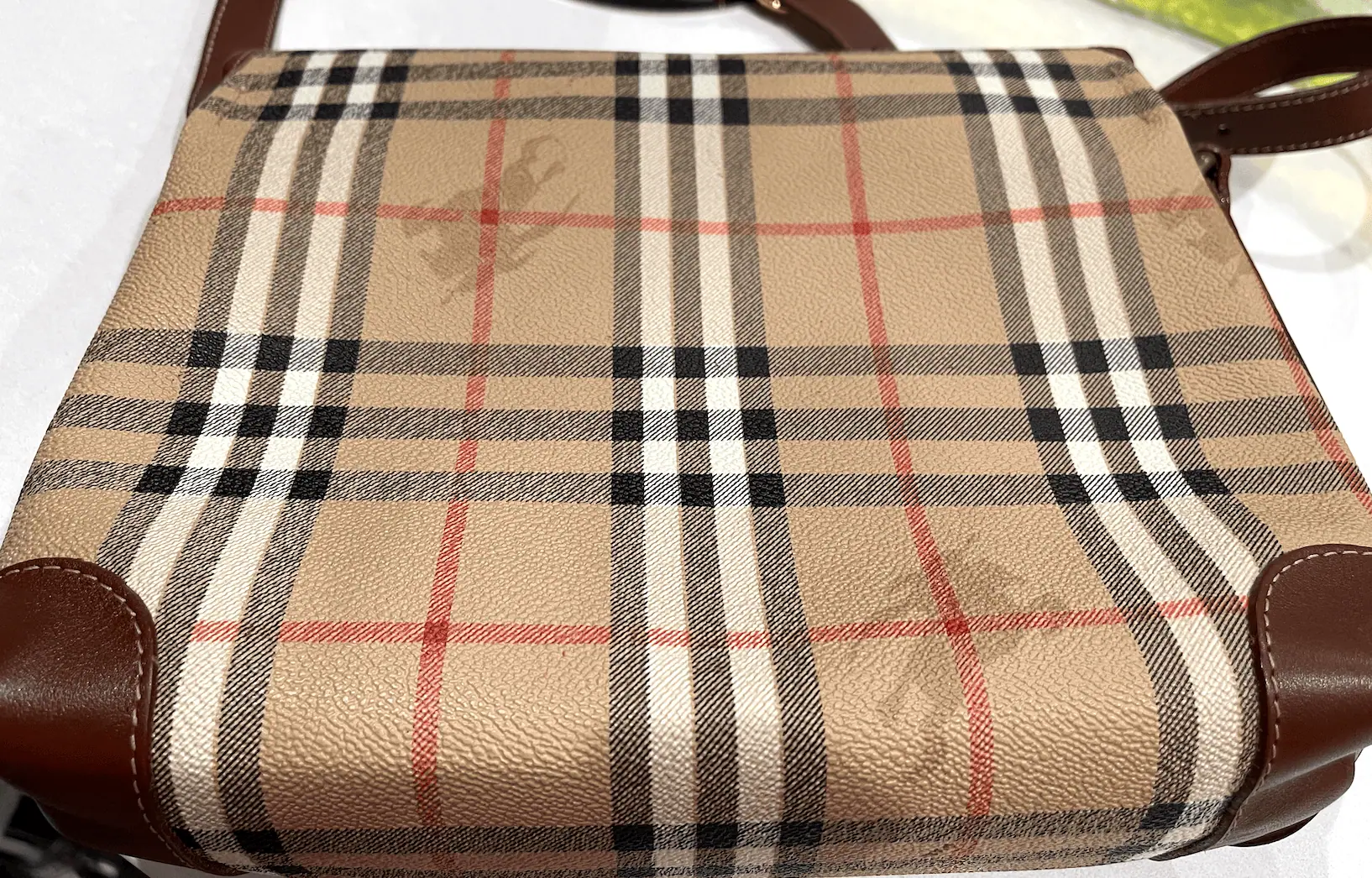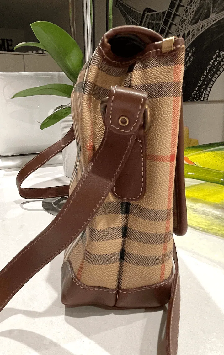 Beautiful Burberry Haymarket Check Messenger Bag with legendary print and brown leather trim and strap will be your perfect companion for everyday use, or travel. It’s absolutely unisex crossbody from a famous brand with vintage quality.