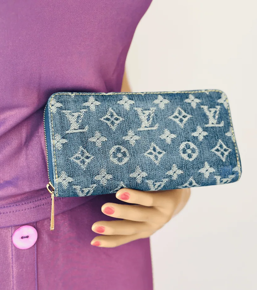 Monogram Blue Denim Zip Around Wallet – Clutch