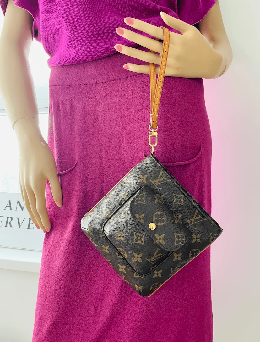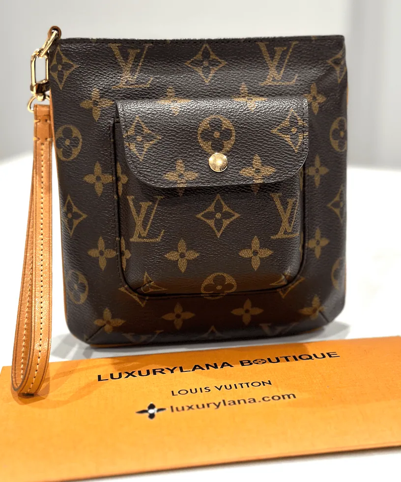 AUTHENTIC PRE-LOVED LOUIS VUITTON MONOGRAM PARTITION WRISTLET POUCH BAG