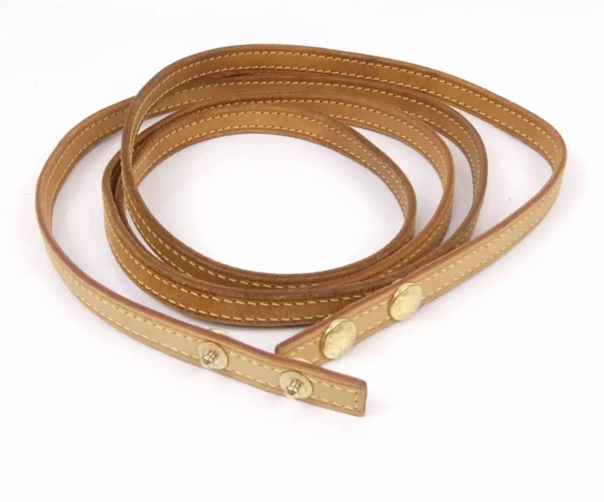The removable natural cowhide strap may be worn as a shoulder strap with a 19 1/2″ drop, or it may be “double-wrapped”