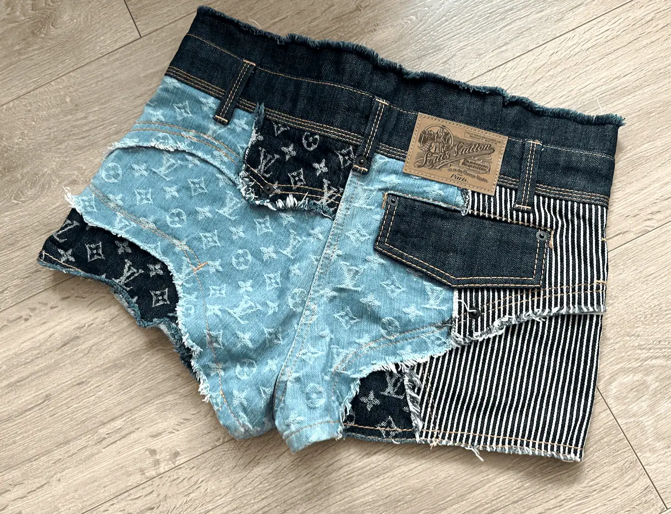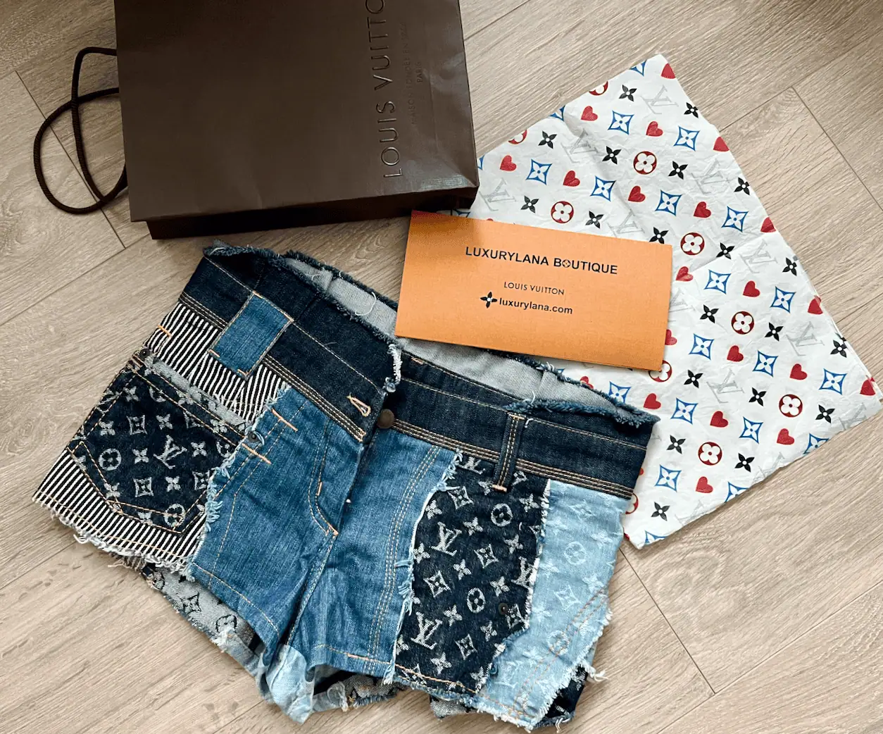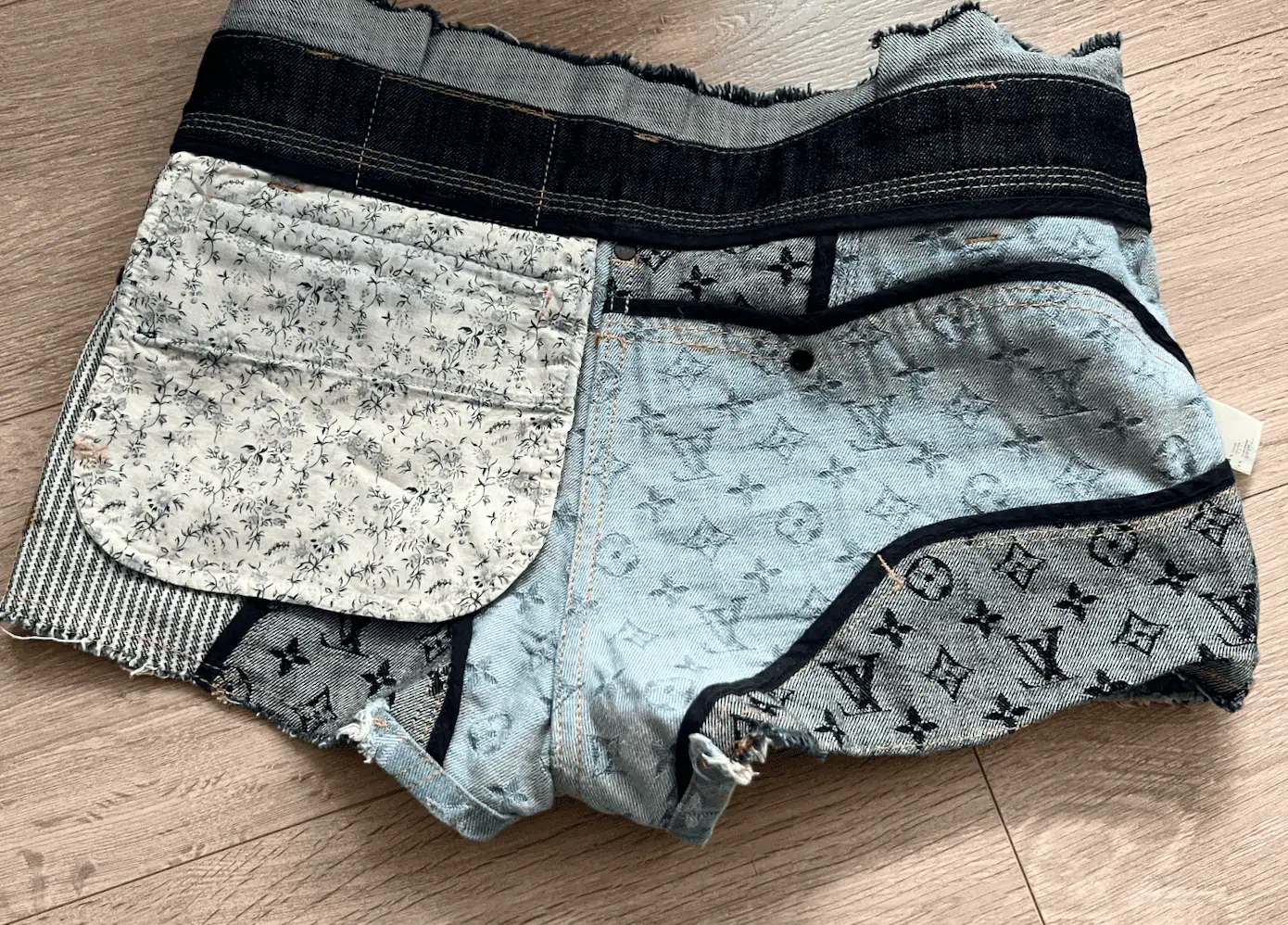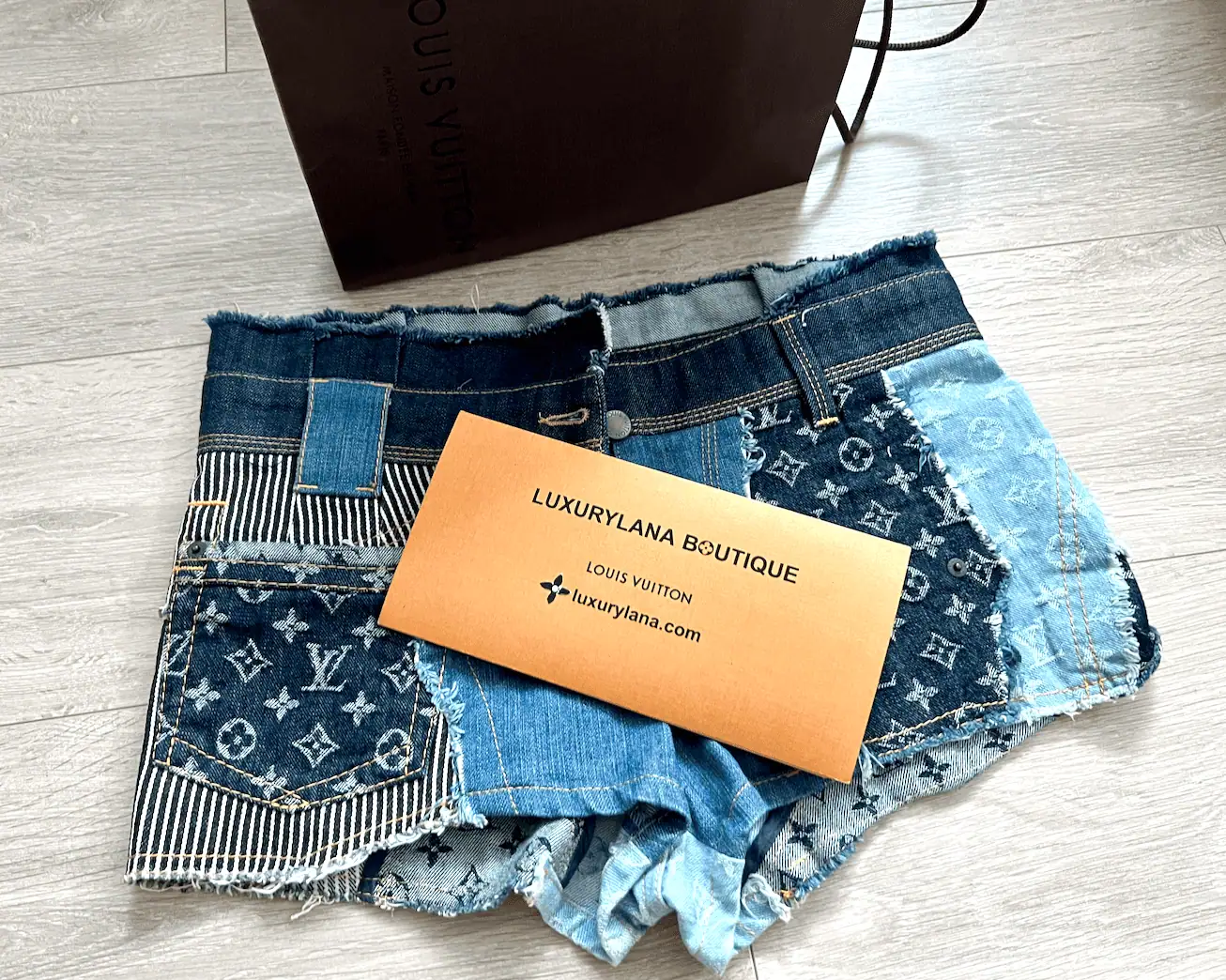 AUTHENTIC PRE-LOVED LOUIS VUITTON RARE PATCHWORK DENIM/JEAN SHORTS/SZ.38FR (US 6)