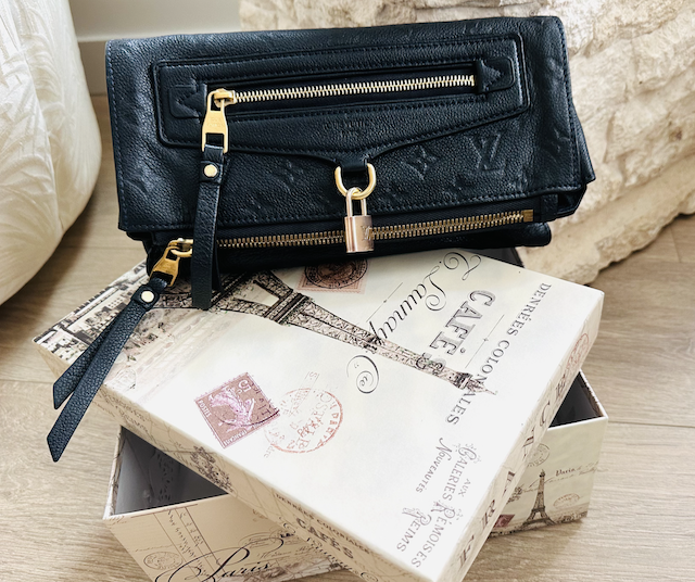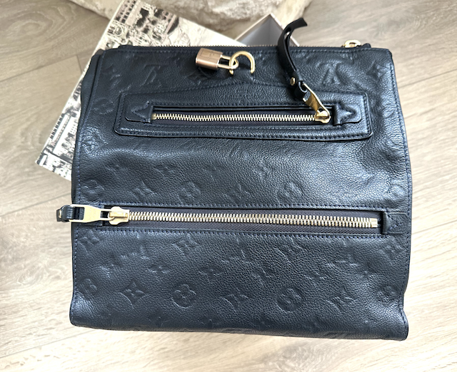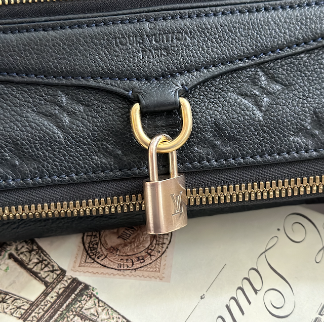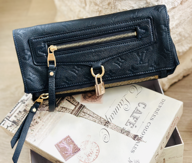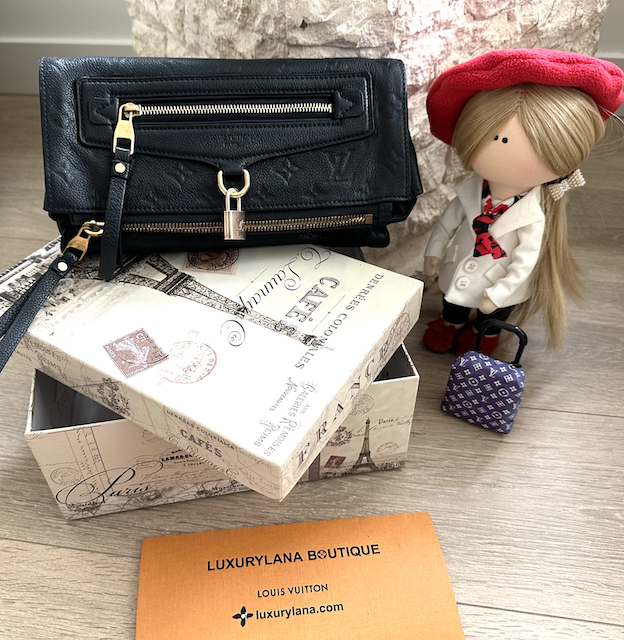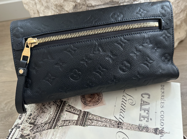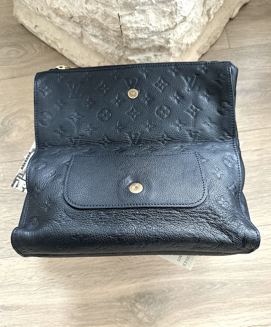 Chic & Rare – Petillante Clutch in Dark Blue Monogram Empreinte Leather. This adorable and sophisticated clutch is crafted from rich navy blue Monogram Empreinte leather, featuring the iconic embossed pattern and elegant gold-tone hardware. Designed with two exterior zip pockets (front and back) and a secure top zip closure, it opens to a spacious, canvas-lined interior in matching deep blue — perfect for day or evening essentials. Stylish, functional, and effortlessly elegant, this piece is a must-have for collectors and fashion lovers alike.