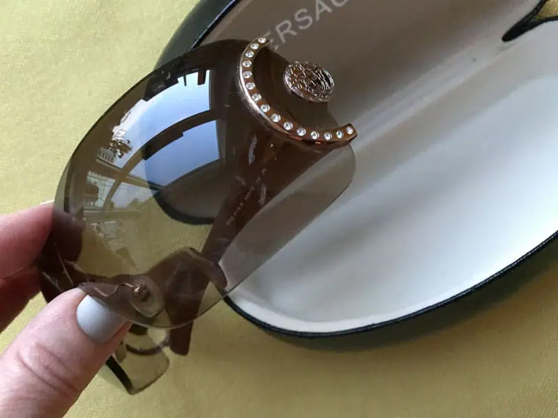 Protect your eyes this summer with the beautiful Versace Oversized Brown Sunglasses! Feature tortoiseshell and Swarovski crystal detailing. 100% UV protection.